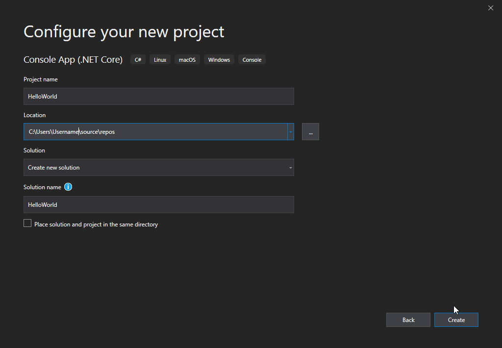 ame\\source\\repos\\HelloWorld\\HelloWorld\\bin\\Debug\\netcoreapp3.0\\HelloWorld.exe (process 13784) exited with code 0.To automatically close the console when debugging stops, enable Tools->Options->Debugging->Automatically close the console when debugging stops.Press any key to close this window . . .
