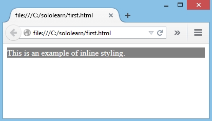 <p style="color:white; background-color:gray;"> This is an example of inline styling. </p>