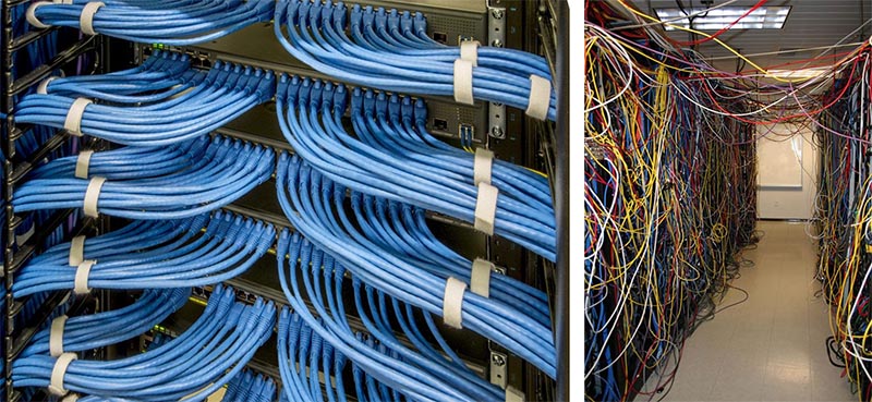 اگر بخشی از شبکه از کارافتاده و باید با بررسی مجدد کابل ها فرایند عیب یابی را طی کنیم. در اجرای یک شبکه، آرایش کابل ها در داخل رَک و مسیرها بسیار اهمیت دارد .