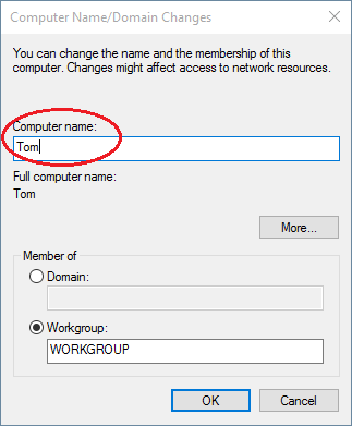 در کادر Computer name نام جدید را وارد کرده، دکمه ok را کلیک کنید .